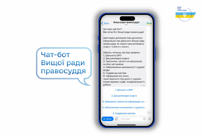 ВРП запровадила чат-бот для автоматизації комунікації та взаємодії з громадянами.