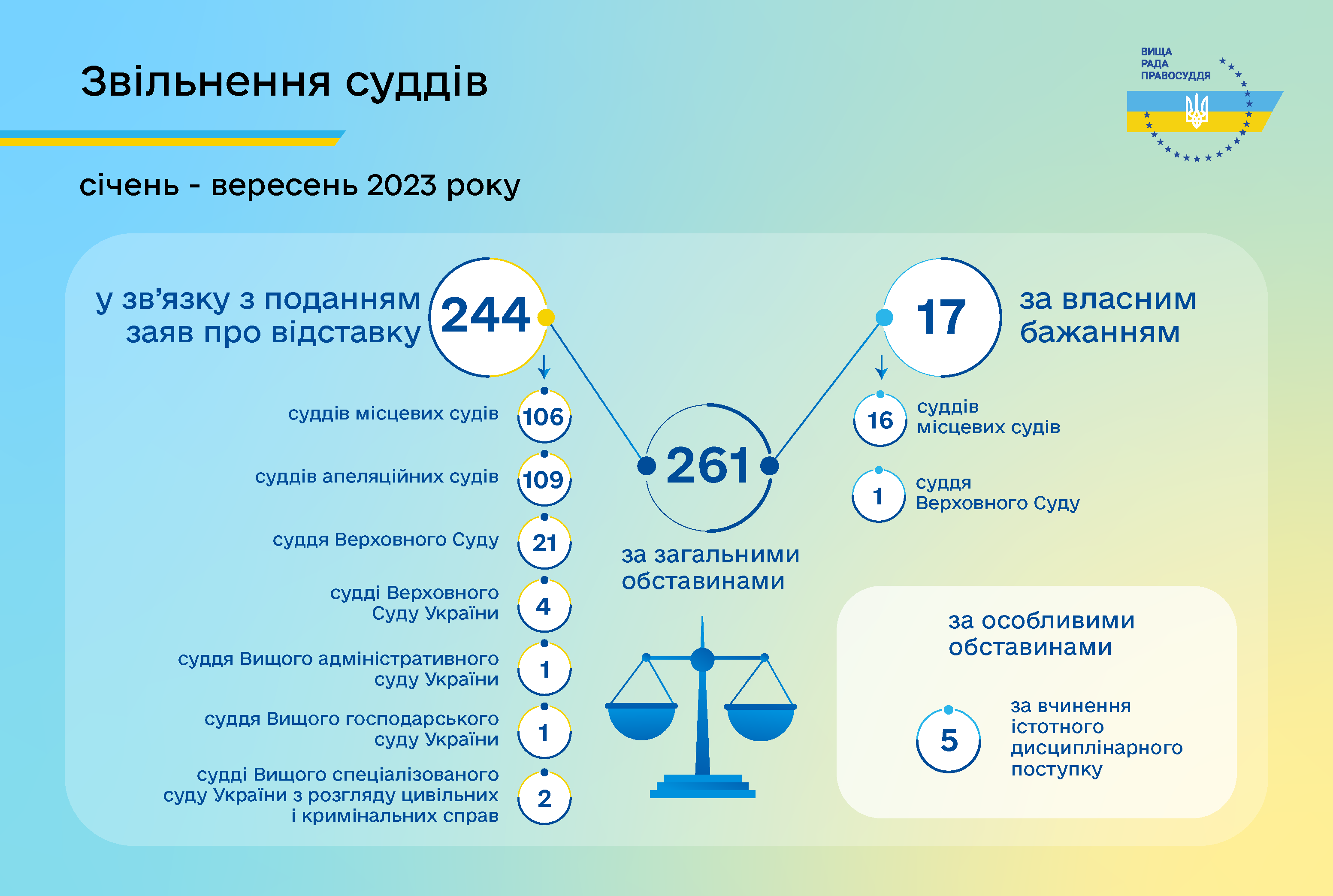 За загальними обставинами звільнено 261 суддю, а саме: